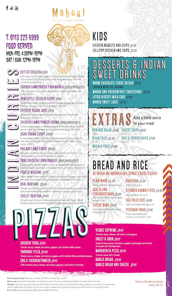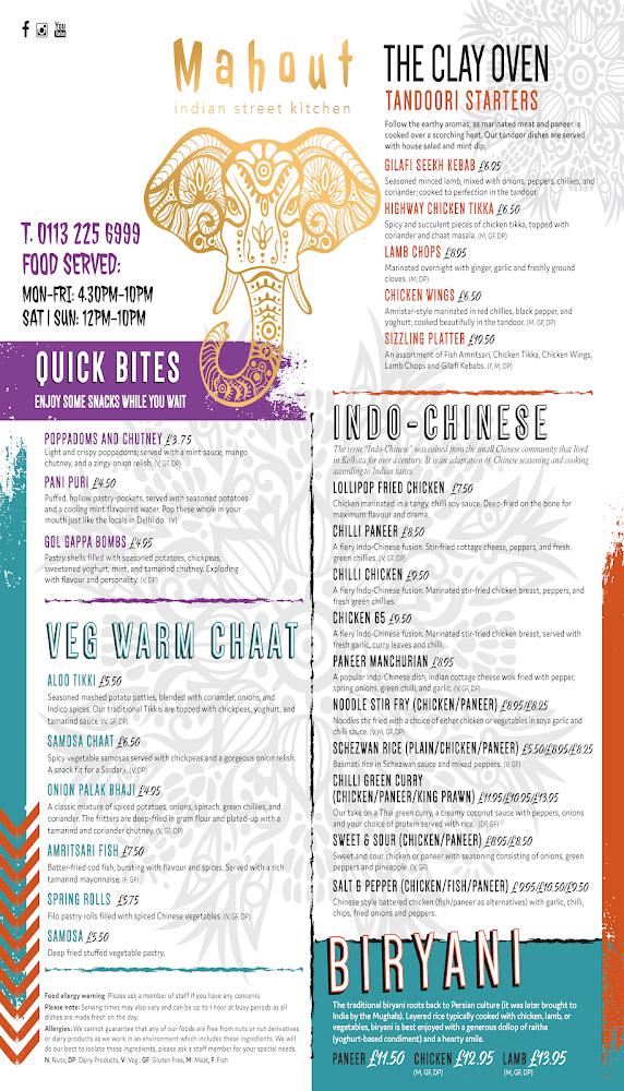 Mahout Indian Street Kitchen lies in the heart of Woodhouse, Leeds, at LS6 2JH. It’s a vibrant area known for its diverse food scene and welcoming atmosphere. The restaurant's exterior is inviting, with a quaint vibe that beckons food lovers to step inside. This establishment thrives on its Indian street food offerings, showcasing the country's rich culinary heritage. The interior is decorated with a charming blend of modern and traditional Indian elements, creating a cozy yet trendy space for diners. Various outdoor seating options allow patrons to enjoy their meals in the fresh air, enhancing the experience. Close to local shops and surrounded by a lively community, it's a spot where friends and family gather over shared plates. The combination of great food, an extensive drink selection, and an accommodating team makes Mahout a go-to dining venue for anyone in Leeds. Plus, with good accessibility options, it's easily reachable for a wider audience.